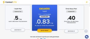 Abonelik sistemi oldukça sade: aylık, yıllık ve ömür boyu olmak üzere üç farklı plan sunuluyor. Kullanıcılar uzun süreli planları tercih ettiklerinde önemli oranlarda indirim kazanabiliyor. Ayrıca yılın belirli dönemlerinde veya özel kampanyalarda bu fiyatlar ekstra düşebiliyor. FastestVPN’in resmi sitesi üzerinden zaman zaman %90’a varan indirimlerle karşılaşmak mümkün.