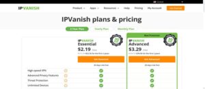 IPVanish, kullanıcılarına iki farklı abonelik planı sunar: Essential ve Advanced. Her iki plan da aylık, yıllık ve iki yıllık olmak üzere üç farklı süre seçeneğiyle gelir. Uzun vadeli planlar, aylık ödemelere göre daha ekonomik fiyatlar sunar.