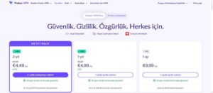 Servis, farklı kullanıcı profillerine hitap eden üç plan sunar: Proton Free, Proton VPN Plus ve Proton Unlimited.
