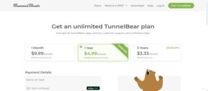 TunnelBear, ödeme yöntemleri açısından oldukça sınırlı bir sistem sunuyor. Yalnızca kredi kartı ile ödeme kabul ediyor ve dijital cüzdanlar, PayPal veya kripto paralar gibi modern alternatiflere destek vermiyor. Bu durum, daha fazla anonimlik arayan ya da esnek ödeme seçeneklerine ihtiyaç duyan kullanıcılar için dezavantaj yaratabiliyor. Ancak temel ödeme yöntemi üzerinden hizmete erişim hızlı ve sorunsuz bir şekilde sağlanabiliyor.